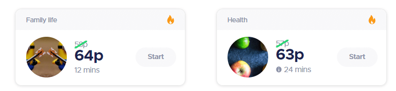 Qmee weighs in as a solid contender in the doing surveys field. There are plenty of surveys to do, you get rewarded for your loyalty and they are on the ball if survey owners are taking the mickey. However, even with the 10% addition, surveys can be fairly low paid. It isn’t true on all of them so you do have to work it out yourself like the 2 I have pictured here, 64p for 12 mins or 63p for 24 mins!